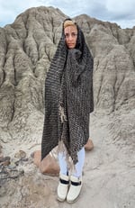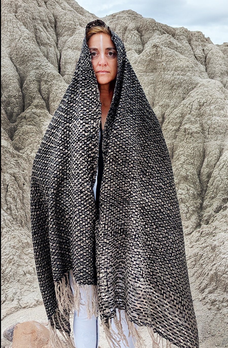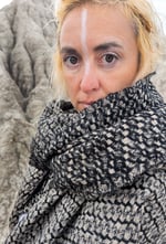 Giant Alpaca Shawl. First this giant shawl was woven loosely, and then the pattern was created by fulling the wool: slightly shrinking the scarf intentionally. This scarf is extremely cozy and luxurious at the same time. It'll keep you warm and styling for the rest of all winters to come.